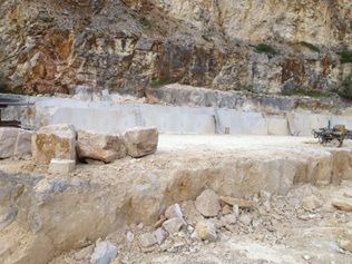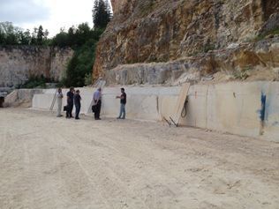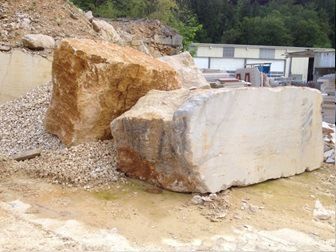 Die Grenze zwischen Liesberg und Laufen verläuft etwa in der Mitte des Steinbruches. Zur Zeit wird auf unserem Gebiet Kalkstein gebrochen, der zu Hausteinen und anderen hochwertigen Produkten weiterverarbeitet wird.