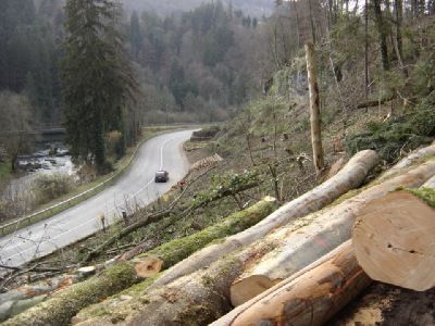 Bei einem Waldbau C Projekt handelt es sich um Holzschläge, welche sehr heikel sind. Diese Schläge sind immer sehr teuer, der Aufwand übersteigt den Erlös vom Holz um ein Vielfaches. Diese Projekte werden vom Bund geplant und bewilligt, die Kosten werden in unserem Fall auf Kanton, Bahn, Bund und Waldbesitzer verteilt.