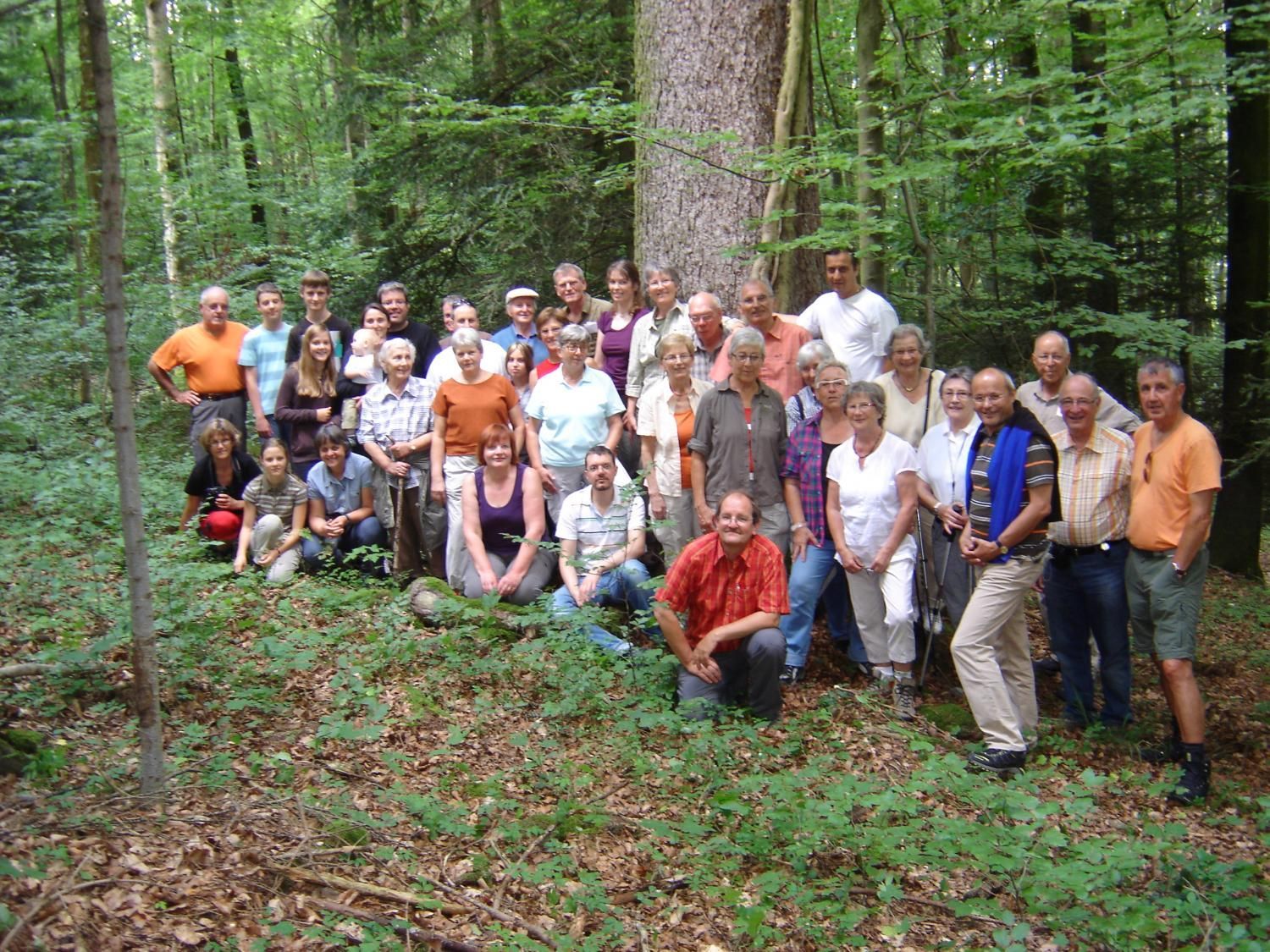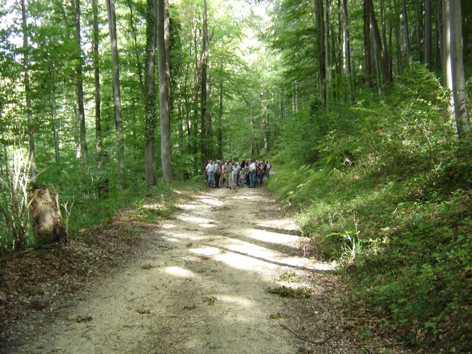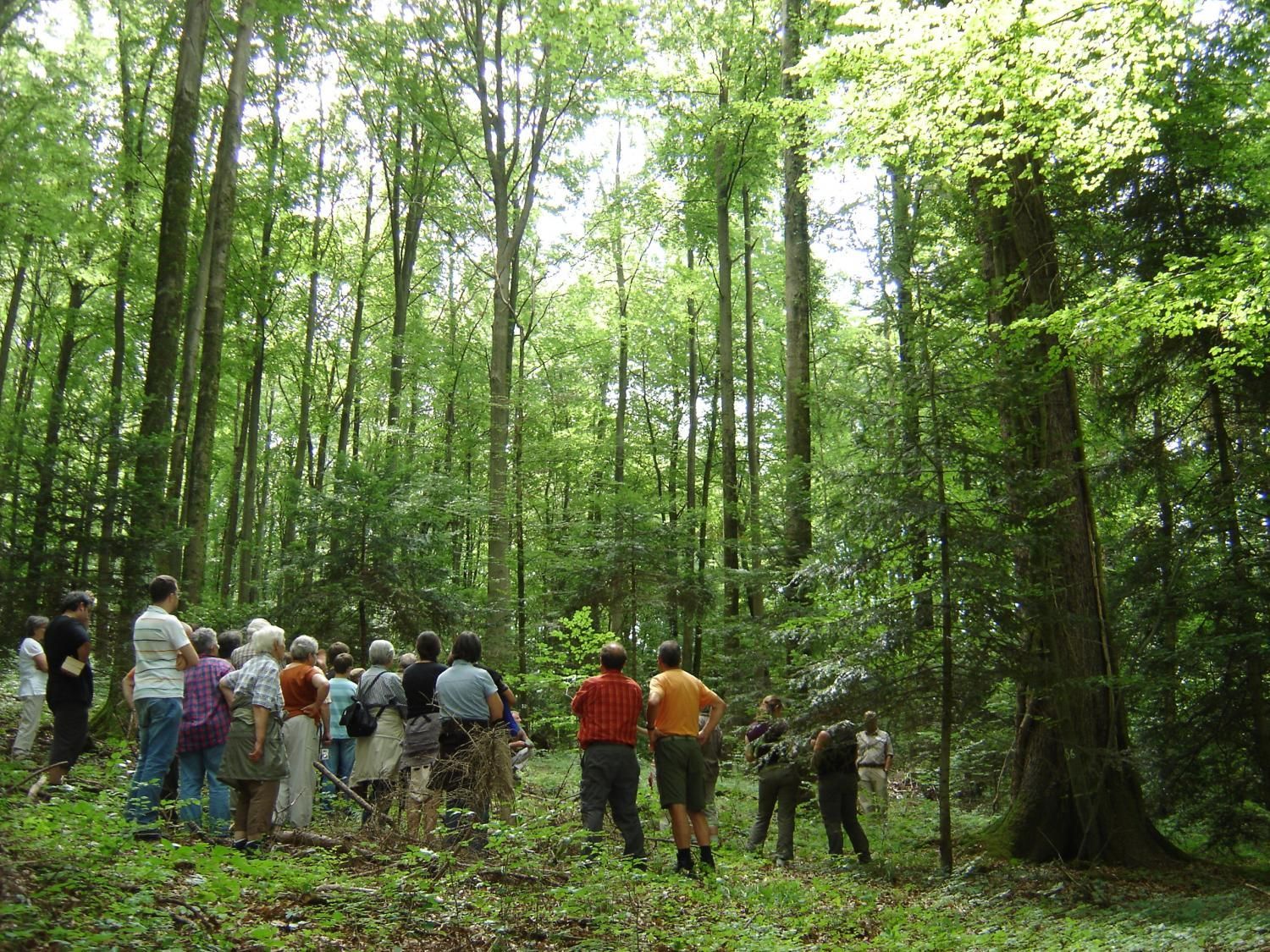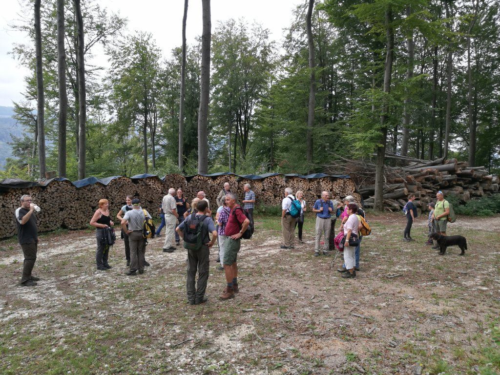 Mit dem Kleinbus wurde in den Bueberg verschoben, wo dann der Förster die Interessierten zur Exkursion durch den Vorstadtburgerwald empfing.