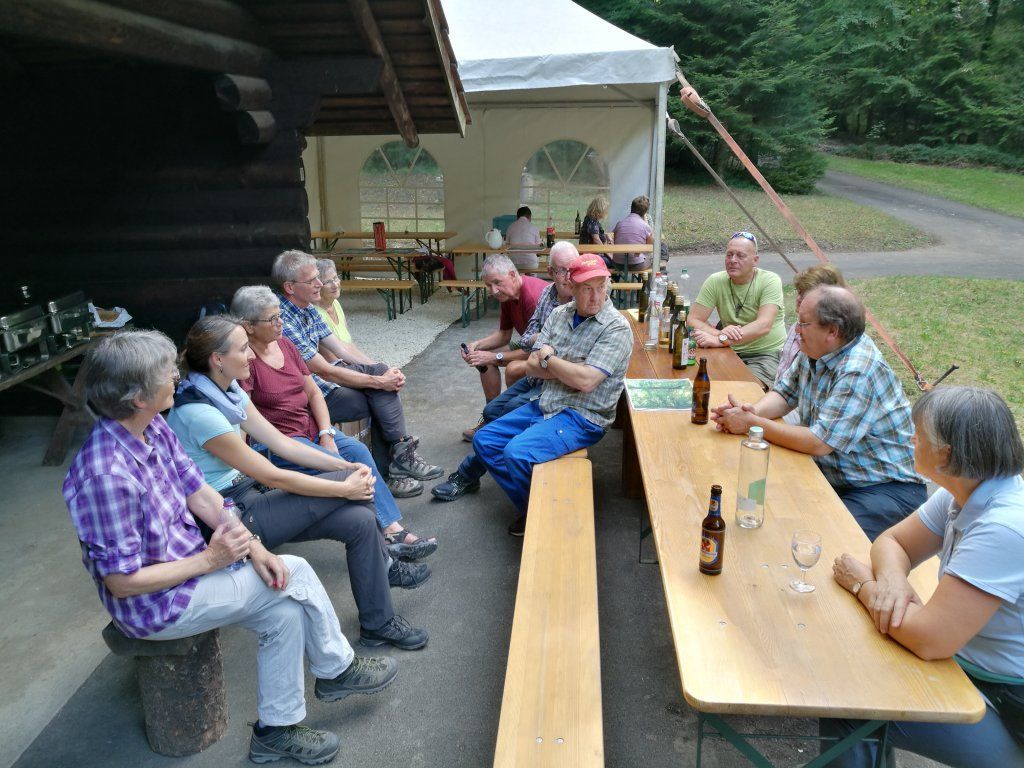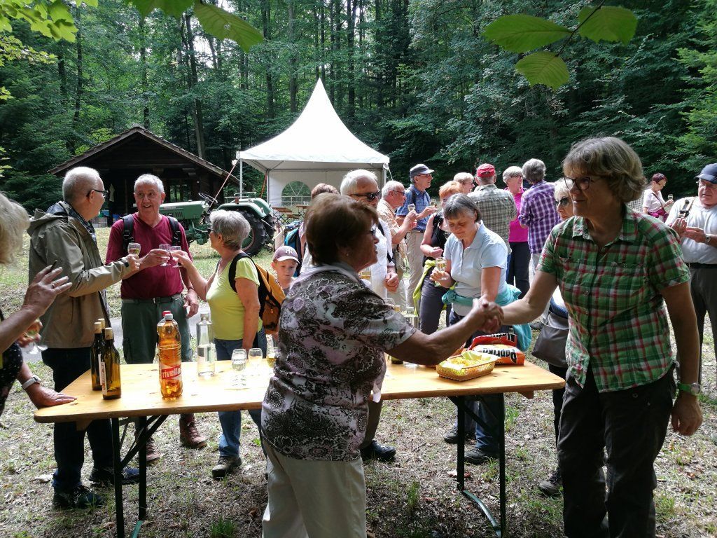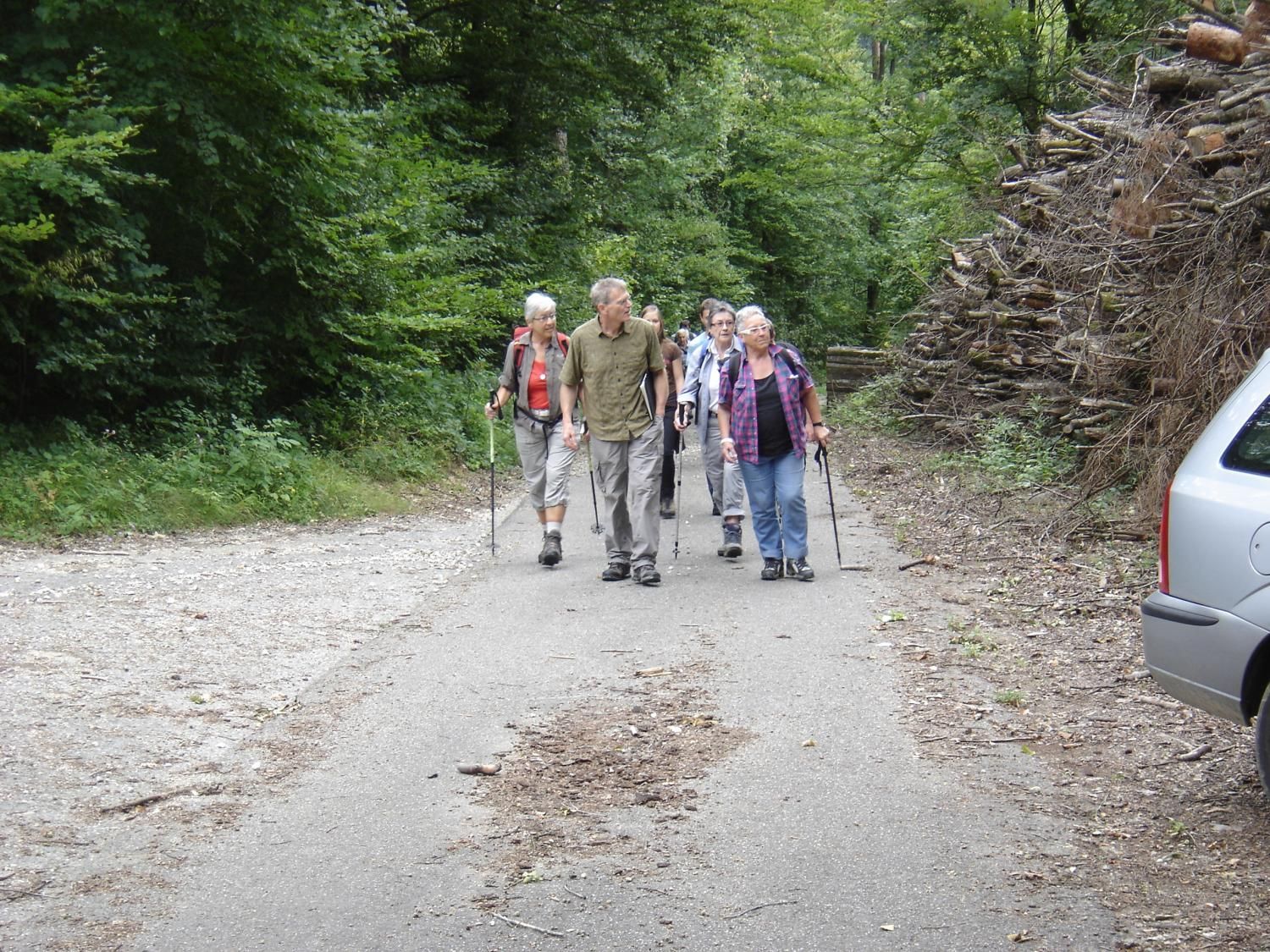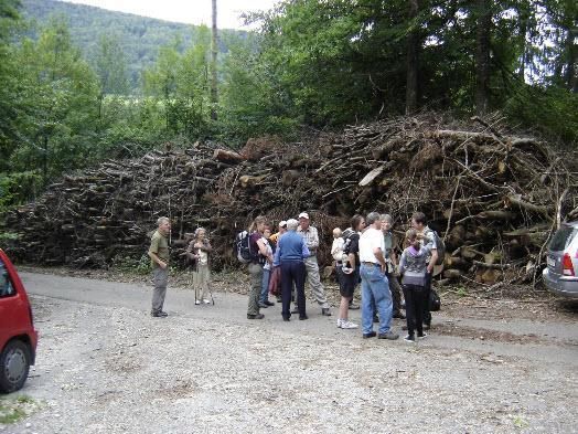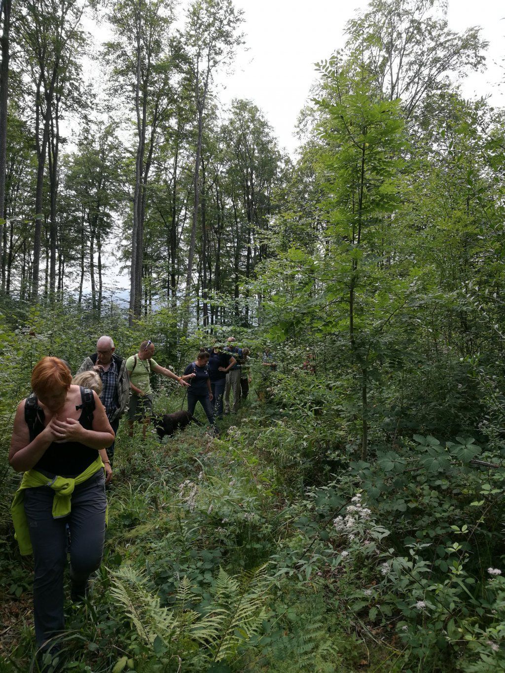 Mit dem Kleinbus wurde in den Bueberg verschoben, wo dann der Förster die Interessierten zur Exkursion durch den Vorstadtburgerwald empfing.