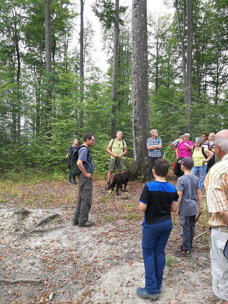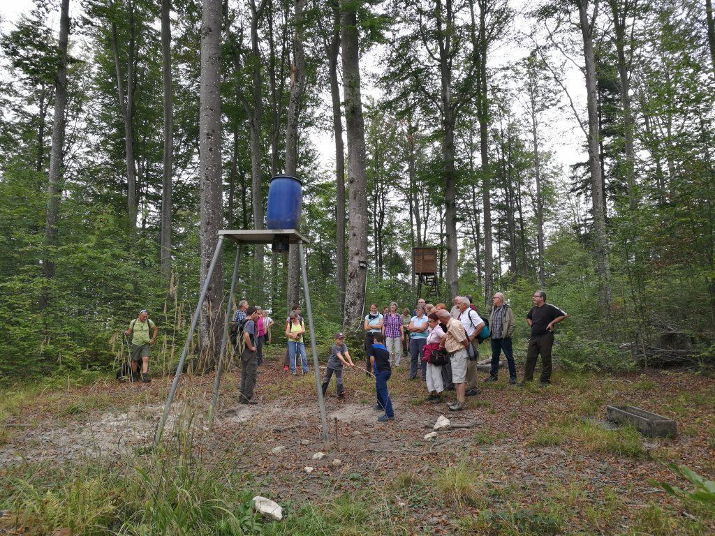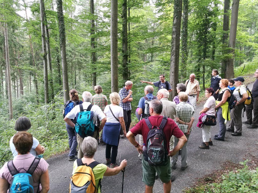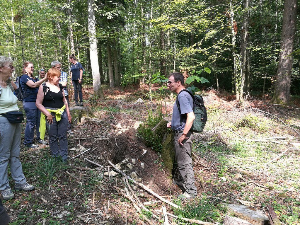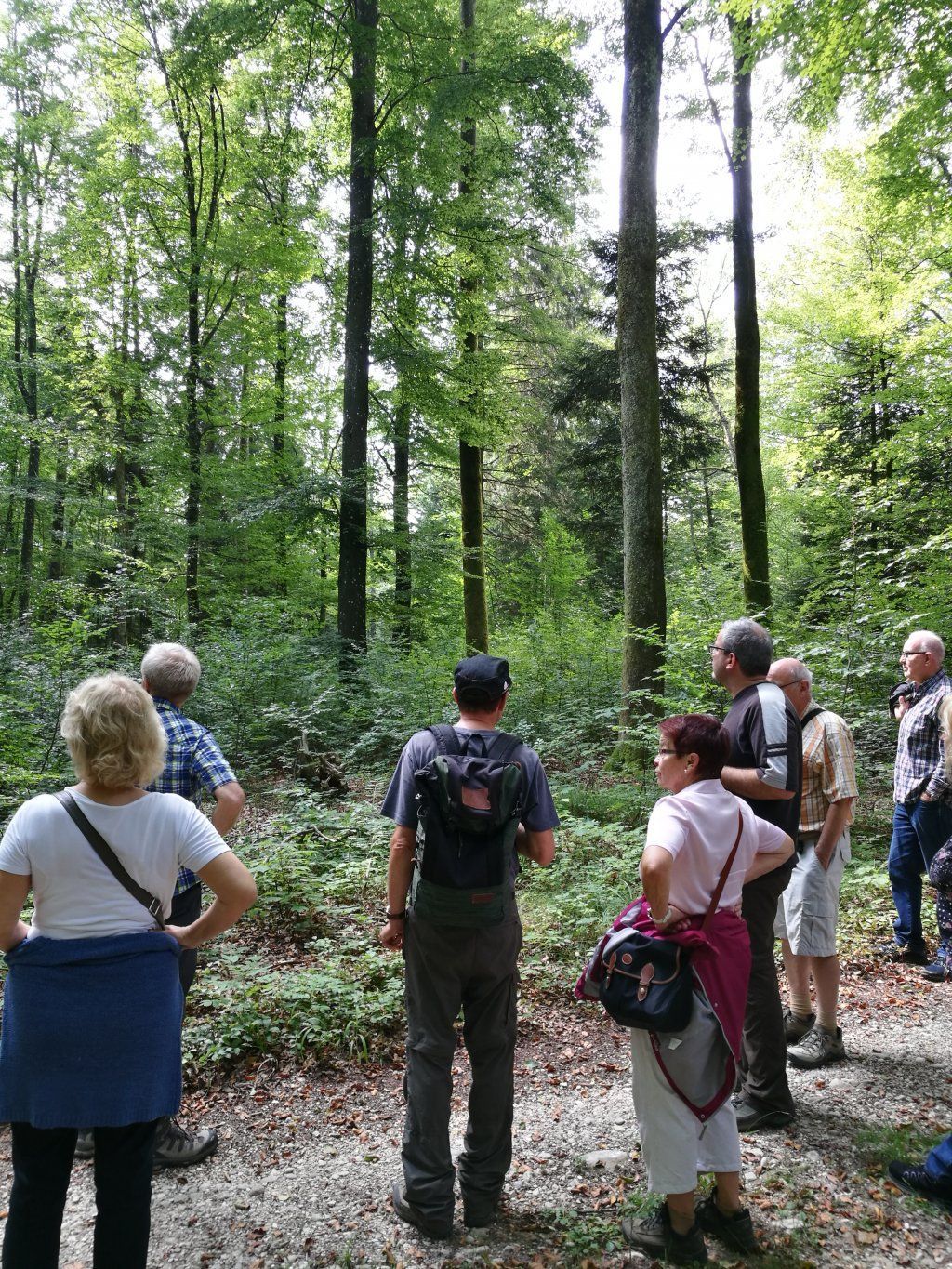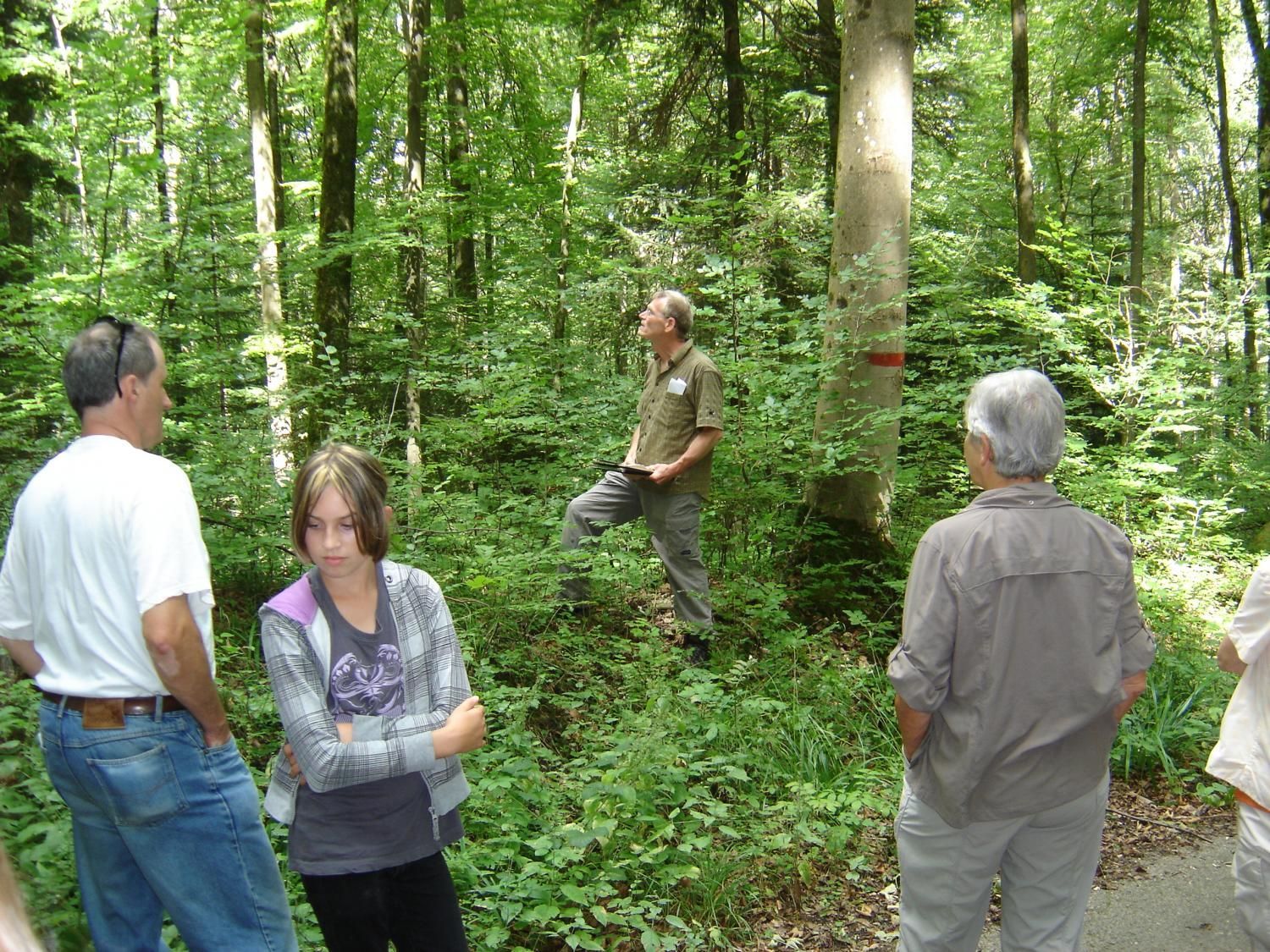 An verschiedenen Posten erläuterte Thomas Suter die neuen Herausforderungen, die der Klimawandel dem Waldbau stellt.