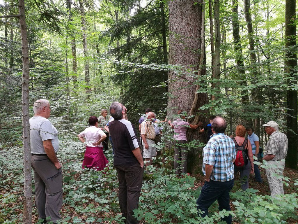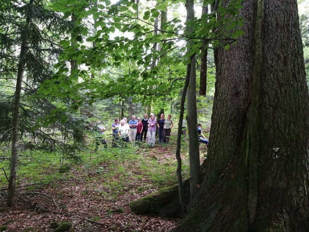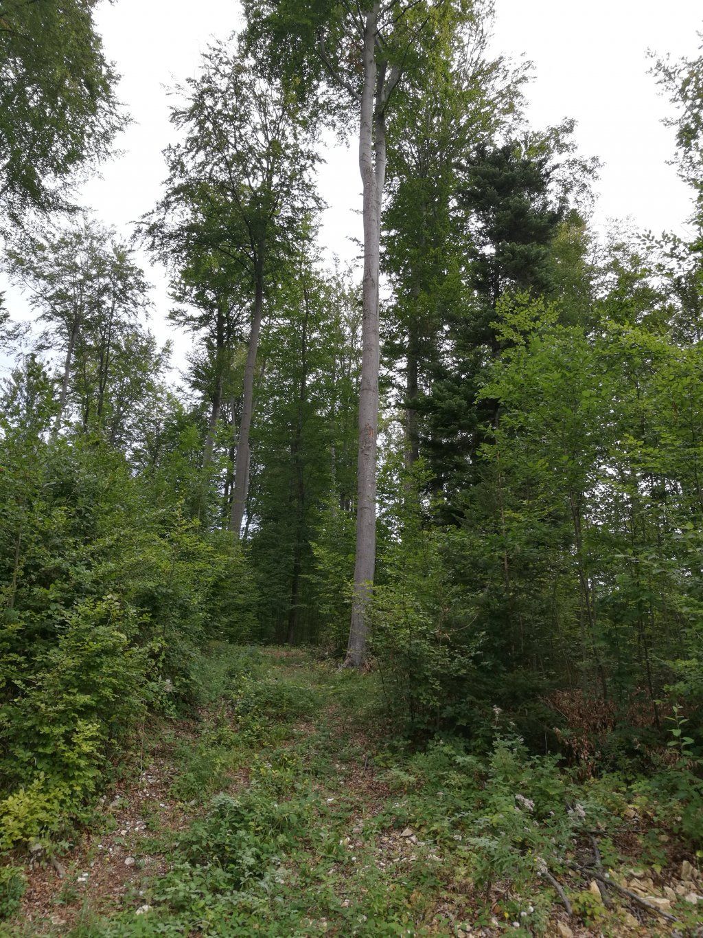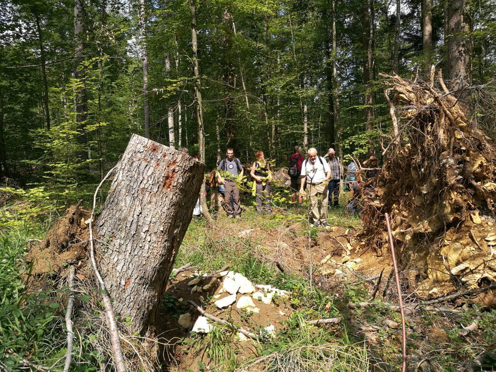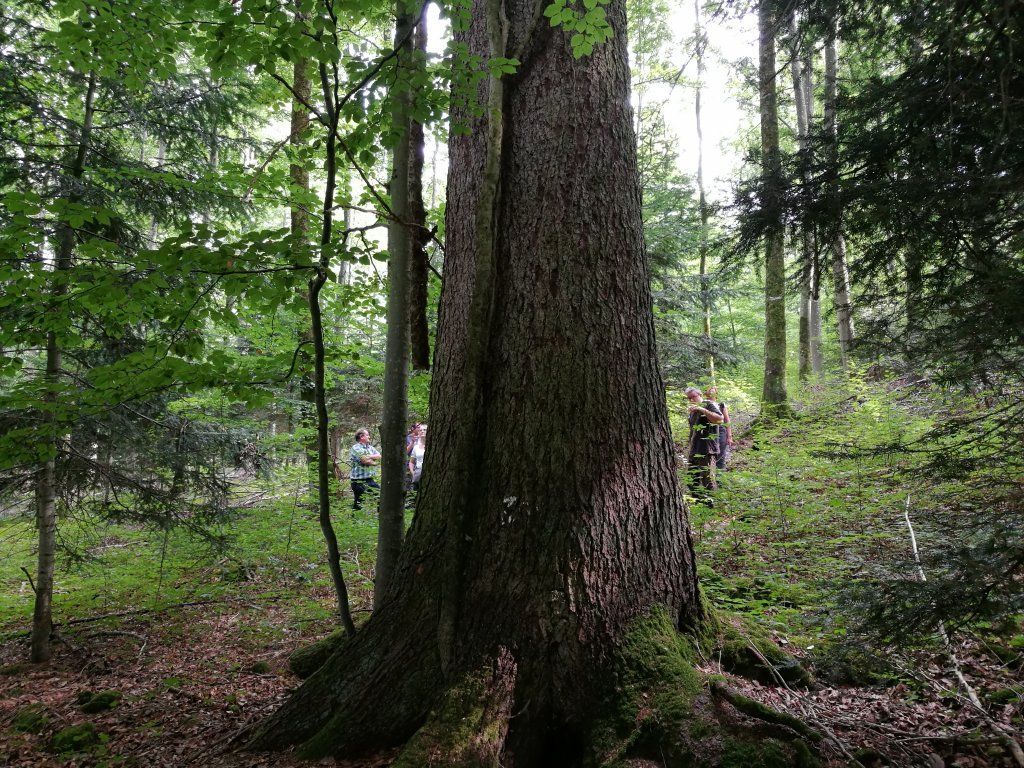 was ein Z-Baum ist, (Zukunftsbaum) und eine sehr interessante Reverenzfläche, die vor langer Zeit von Forstingenieur Paul Kümin erfasst wurde und die noch immer wertvolle Daten über den Zuwachs unseres Waldes liefert.